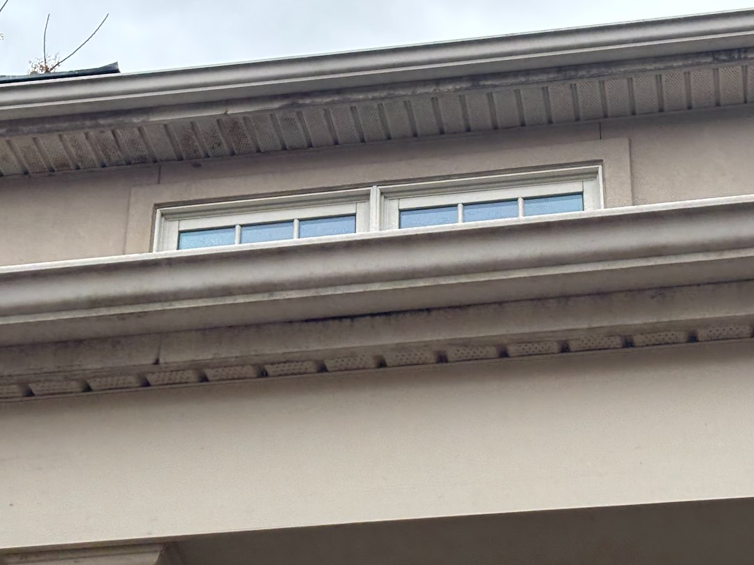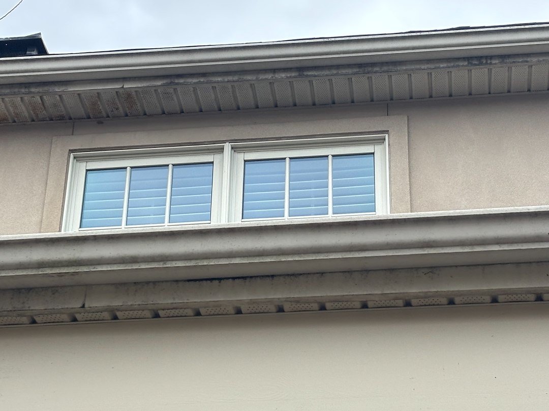 Roof cleaning and gutter cleaning were done during the same visit. Gutters were cleared of built-up leaves and debris so water can flow freely. Roof cleaning focused on removing surface dirt and organic growth where present, improving the roof's appearance and helping prevent future buildup.