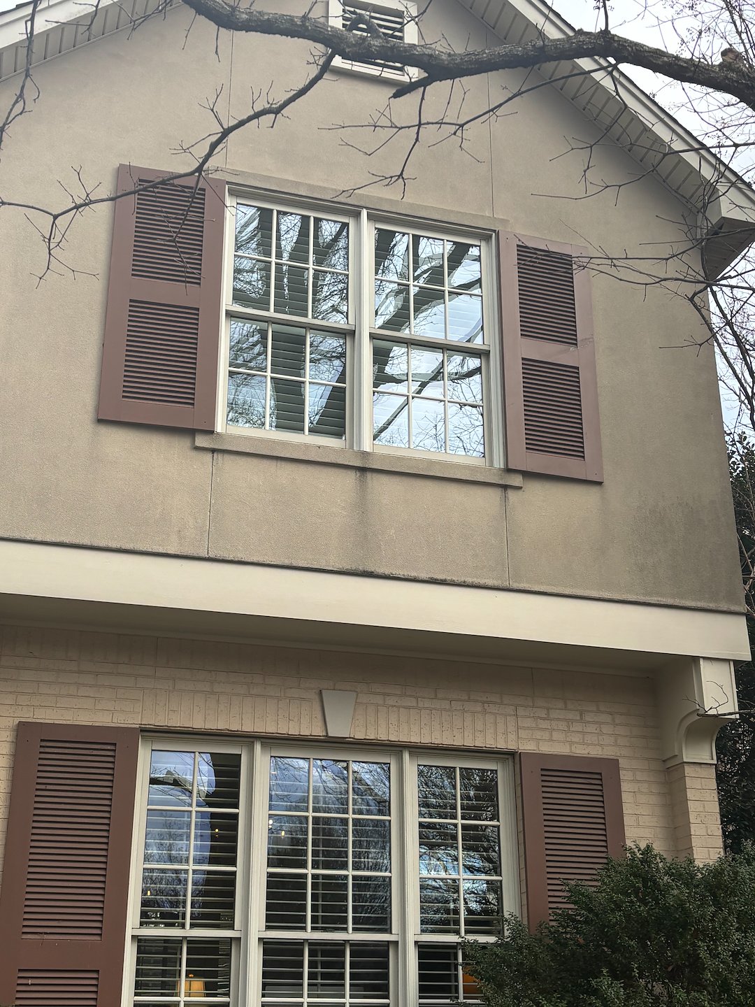 We started with the exterior of the house, making sure the stucco and brick visible surfaces were cleaned to remove accumulated dirt and surface grime. Working systematically allowed us to move from one area to the next without tracking debris back into cleaned spaces, which helped keep the job efficient and organized.
